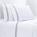 Recall the luxurious look and feel of grand hotel bedding with our Embroidered Border Sheet Set. The pure white 350TC sateen sheeting provides an elegant drape, while the crisp embroidered line accents add texture and a refined finish.