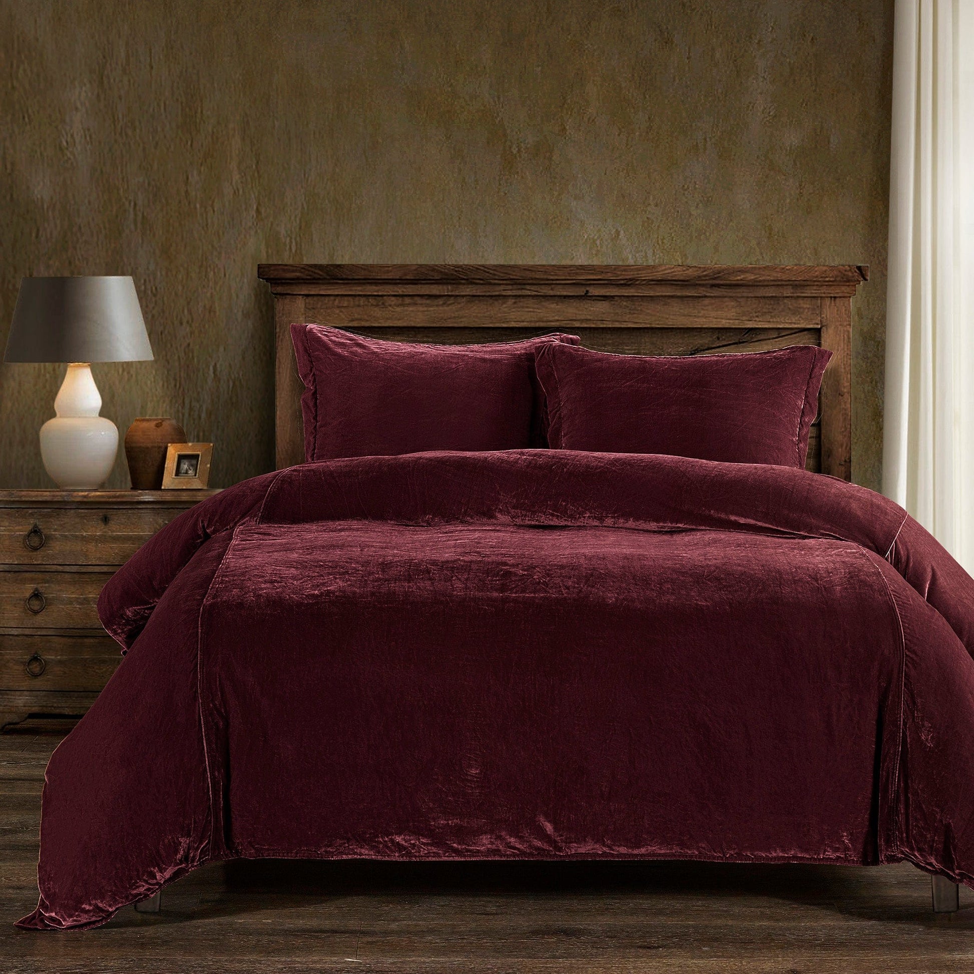 Stella Faux Silk Velvet Duvet Cover Set, Queen