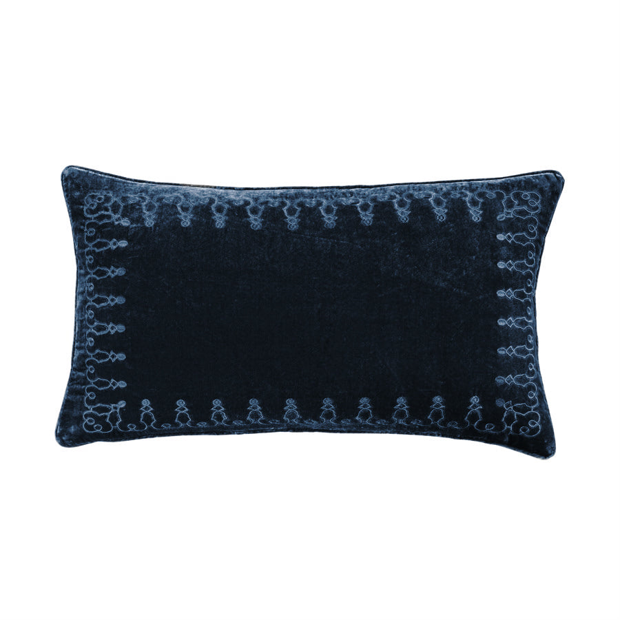 Stella Faux Silk Velvet Embroidered Lumbar Pillow